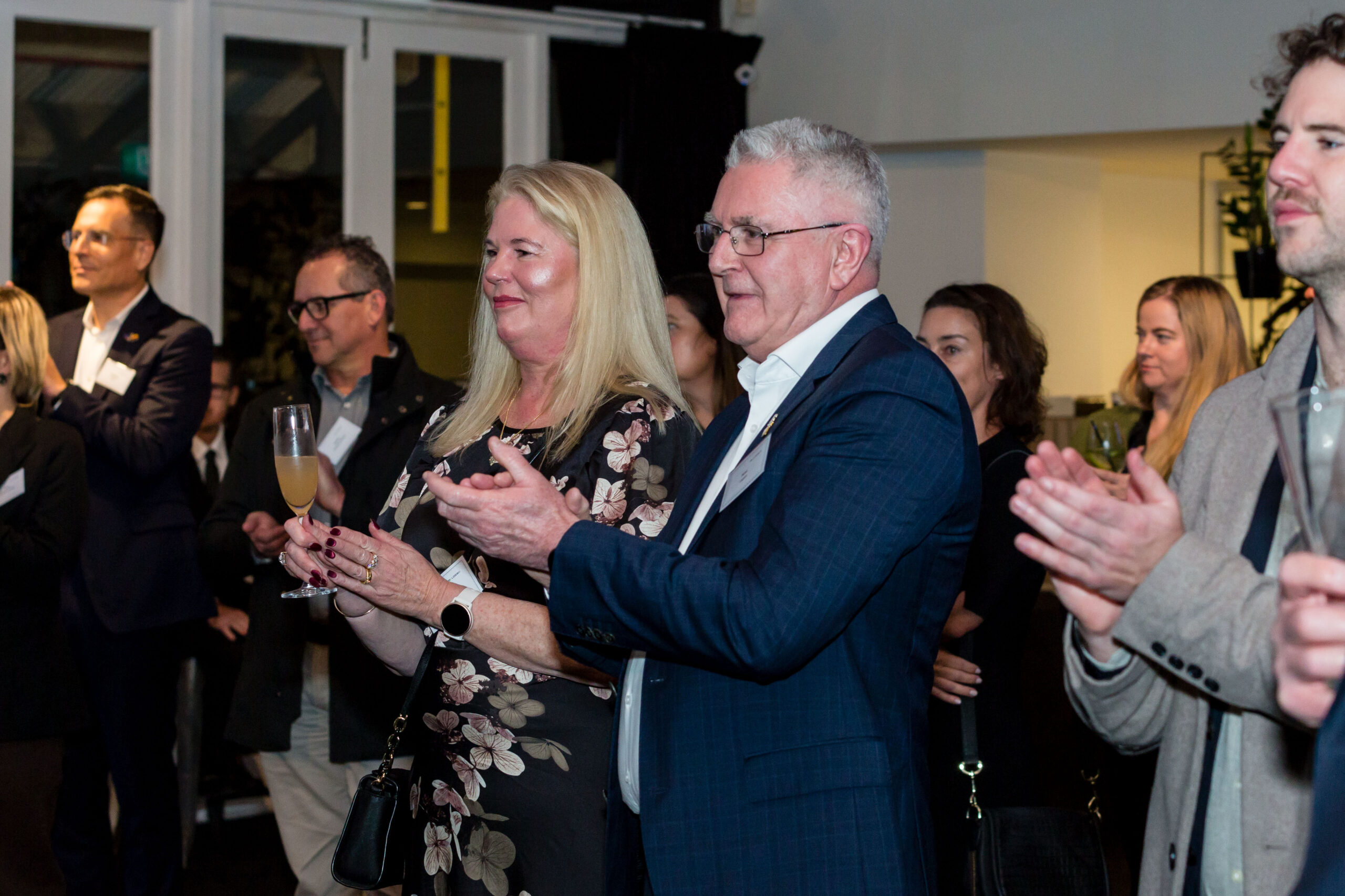 Company Rebranding Cocktail Evening Audience Applauding Company Rebranding Cocktail Evening Audience Applauding